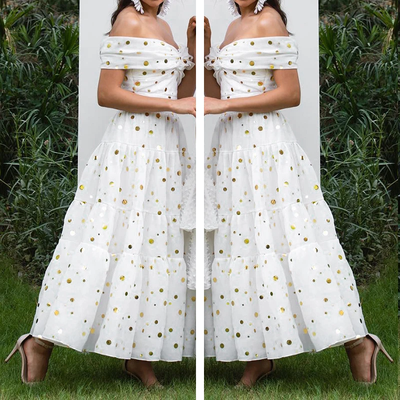 * Описание товара: сексуальный, с открытыми плечами, в горошек, милый стиль принцессы, талия