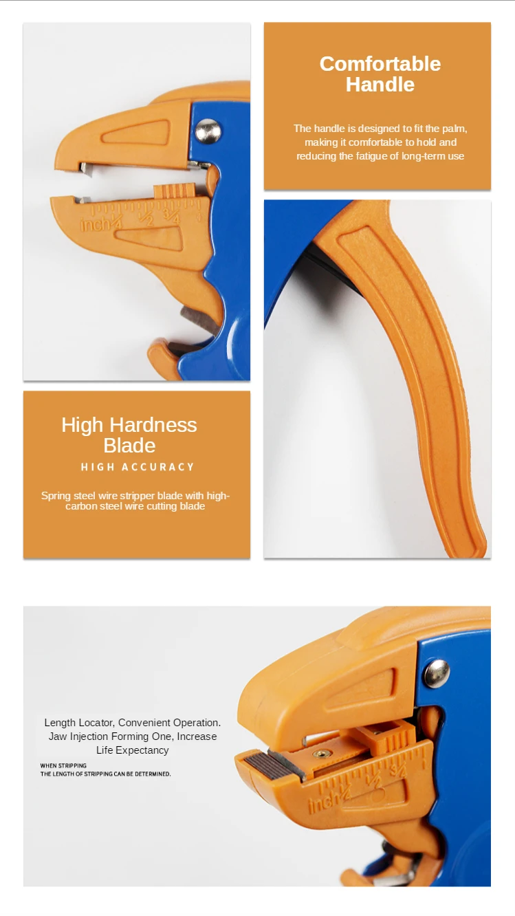 Диапазон зачистки: 0,25-6 мм2 Диаметр зачистки может регулироваться автоматически для различных сечений проволоки Точная конструкция лезвия без повреждения проводников Во время зачистки провод крепится зажимными губками С регулируемой длиной стоп, с пружиной возвращается стриптизерша в исходное положение, длительный срок службы