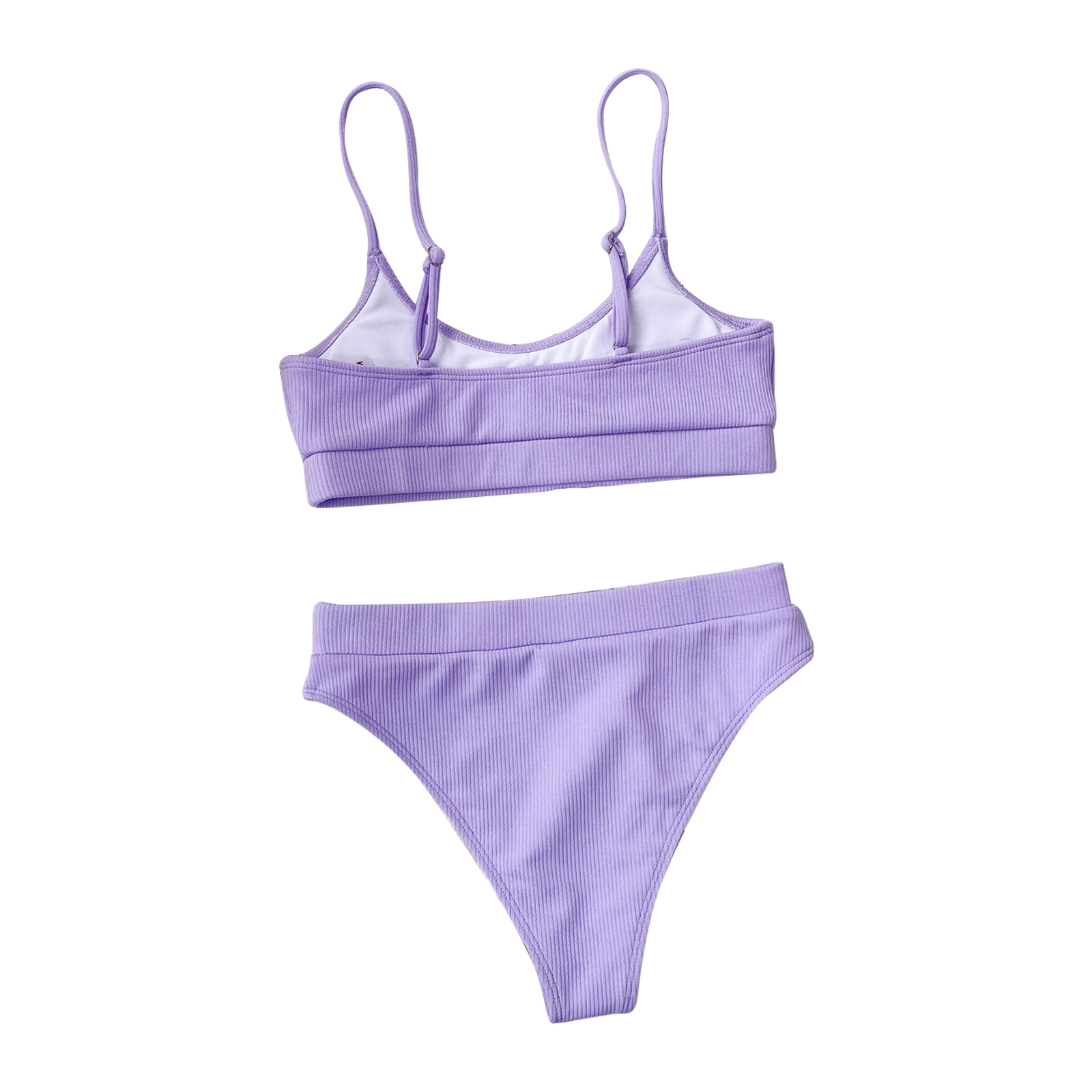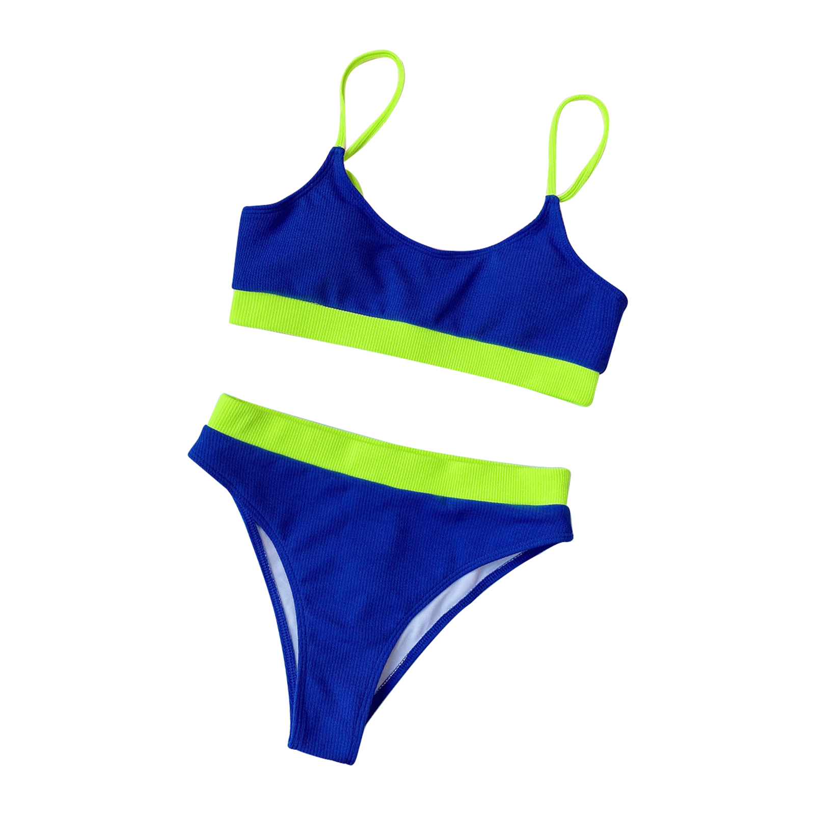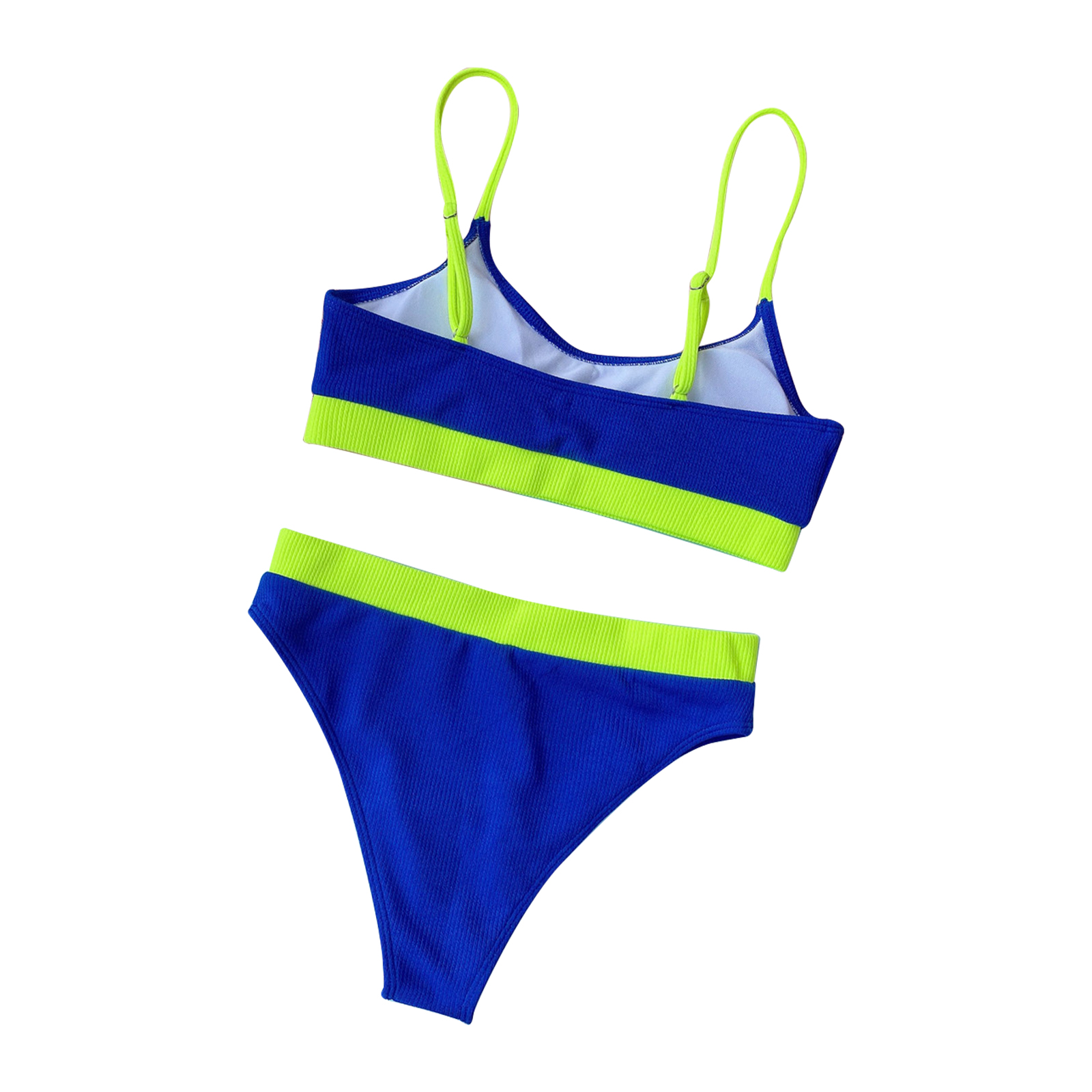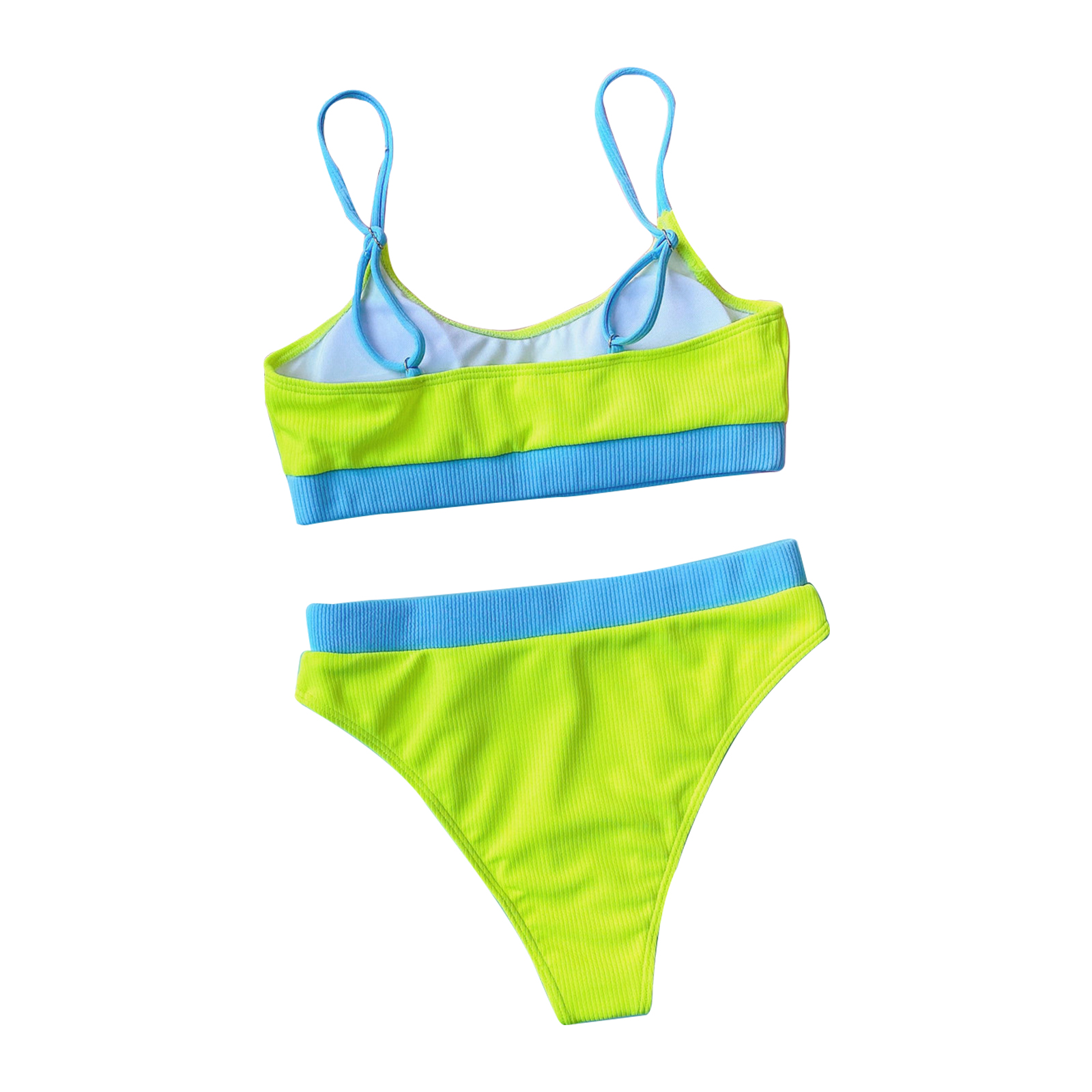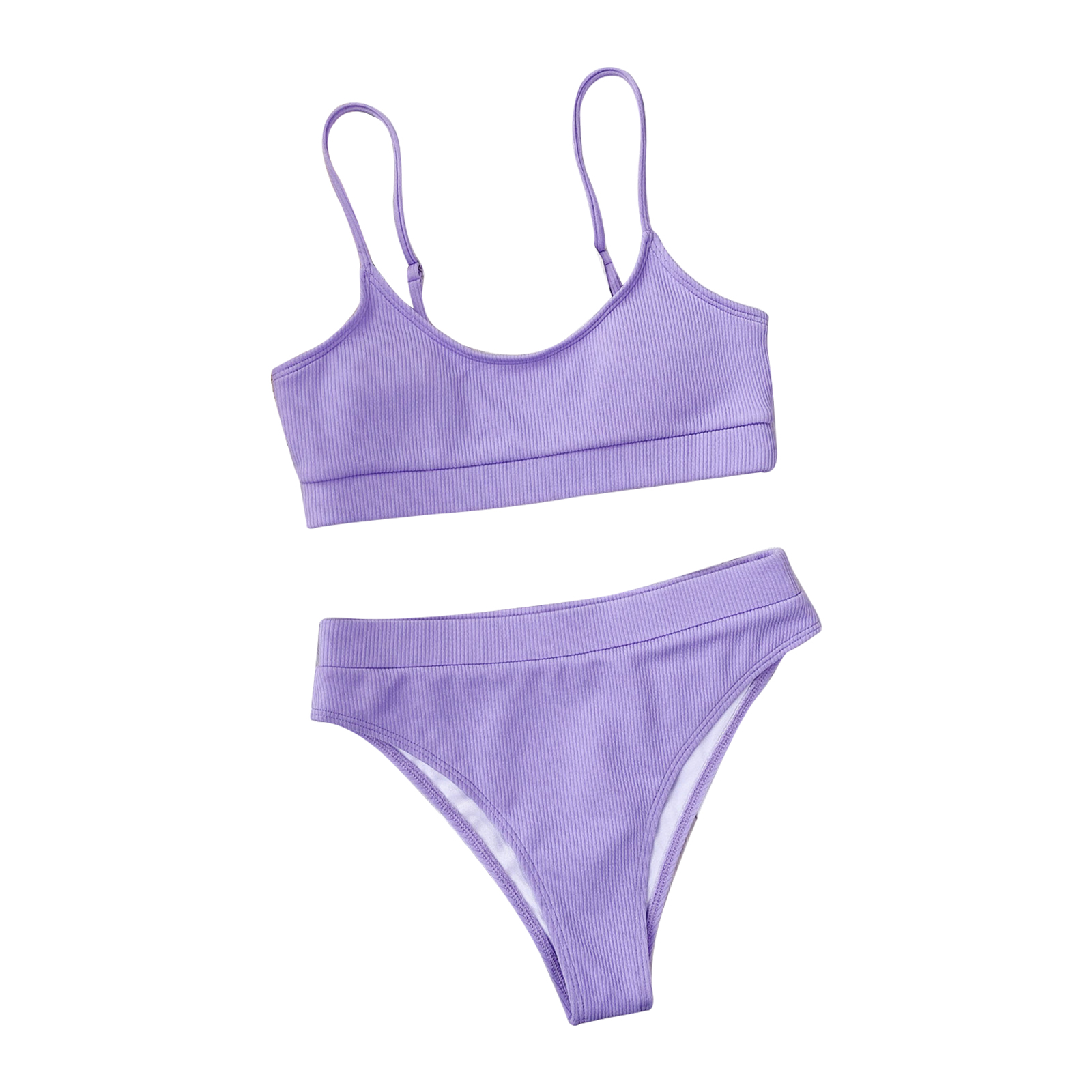 Женский однотонный комплект бикини из 2 предметов, укороченный топ на бретелях с высокой талией, спортивный костюм из 2 предметов