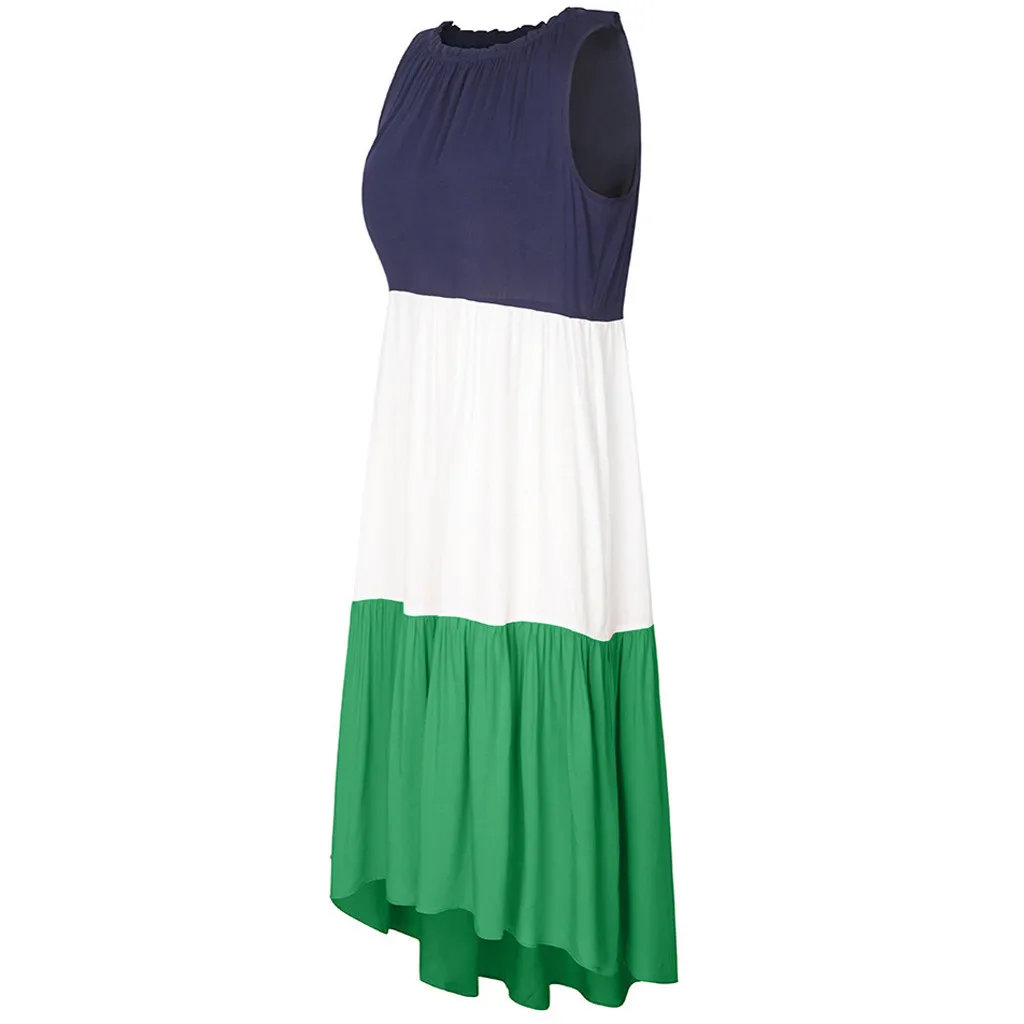 Женское Повседневное платье макси без рукавов, многослойное Свободное длинное платье в стиле пэчворк с круглым вырезом