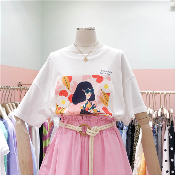 3 цвета Лето 2019 г. корейский стиль Мода Цветочный Вышивка женские топы корректирующие короткий рукав футболки для женщин женская футболка рубашка femme
