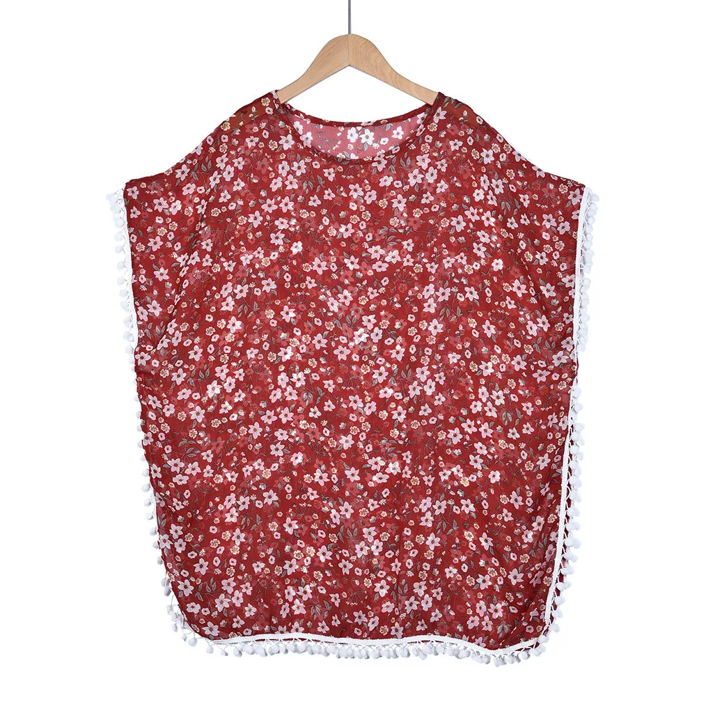 Для женщин платье-накидка с цветочным принтом Блузка с принтом топы бикини Одежда для купания пляжный купальный костюм халат