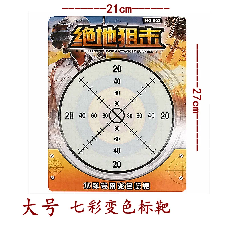 1. 100% абсолютно новый высококачественный. 2. Изменяющая цвет Цель после стрельбы из водяных бусин. 3. Может быть использован для определения точности/обучения. 4. Немедленно меняйте цвет после съемки и исчезайте в течение 1-3 минут. 5. Можно вернуть. 6. Применимо: используется людьми старше 3 лет. 7. Цвет: как показано 8. Материал: бумага 9. Размер изделия: 21*27 см 10. Посылка: 10 X
