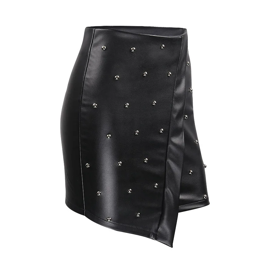 * Описание товара: Новая женская повседневная короткая мини-юбка-карандаш из искусственной кожи с высокой талией и бисером
