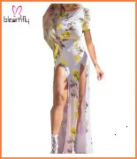 Женское длинное платье с короткими рукавами хлопковое принтом в Корейском стиле