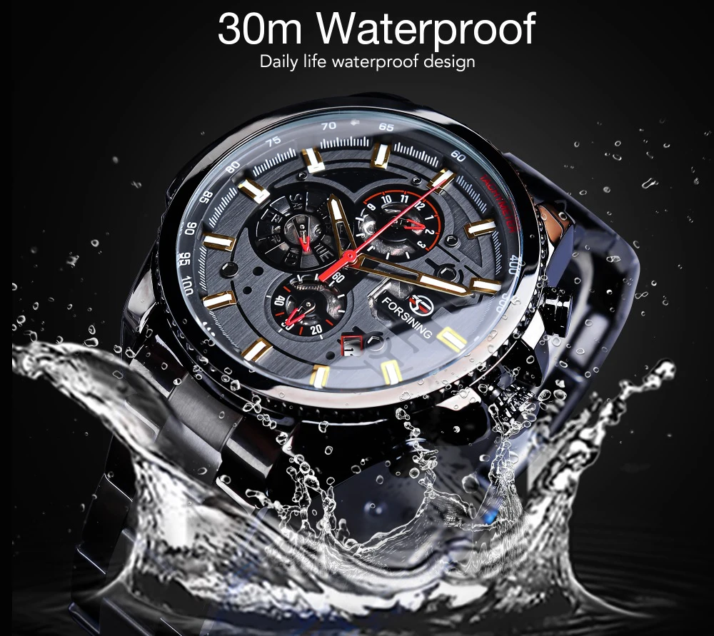 -Корпус часов из нержавеющей стали делает их более прочными. -Водонепроницаемые в обычных условиях ношения (не рассчитаны на принятие душа или плавание). -Автоматический Завод