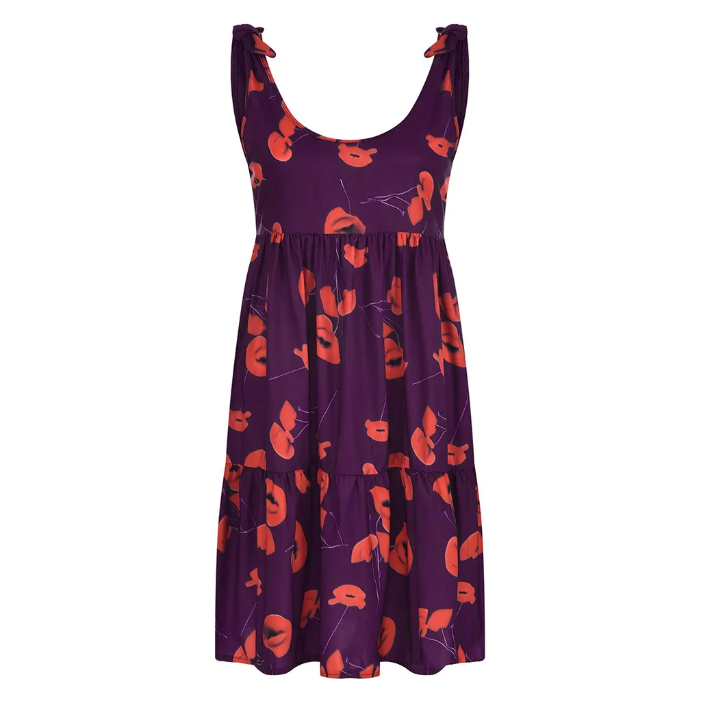 Женское свободное платье без рукавов с цветочным принтом, Бандажное мини-платье, летнее платье