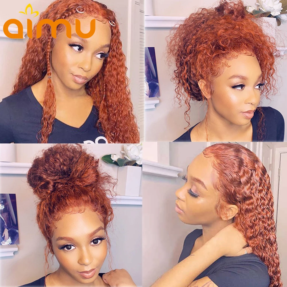 Три цвета на выбор Парик из имбиря Парики из бордового кружева спереди Парик из натуральных вьющихся волос Крышка: 13x4 кружевной передний парик 13x6 кружевной передний парик