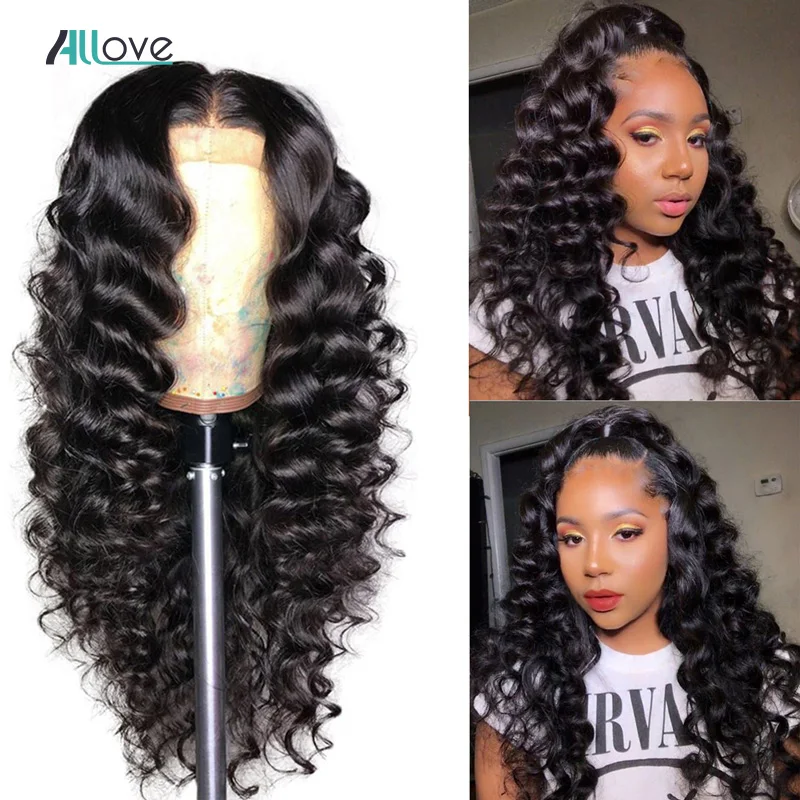 Allove свободный глубокий парик, 100% человеческие волосы, очень мягкие, могут быть окрашены или отбелены, легко расправлены или свернуты в любой стиль, который вам нравится