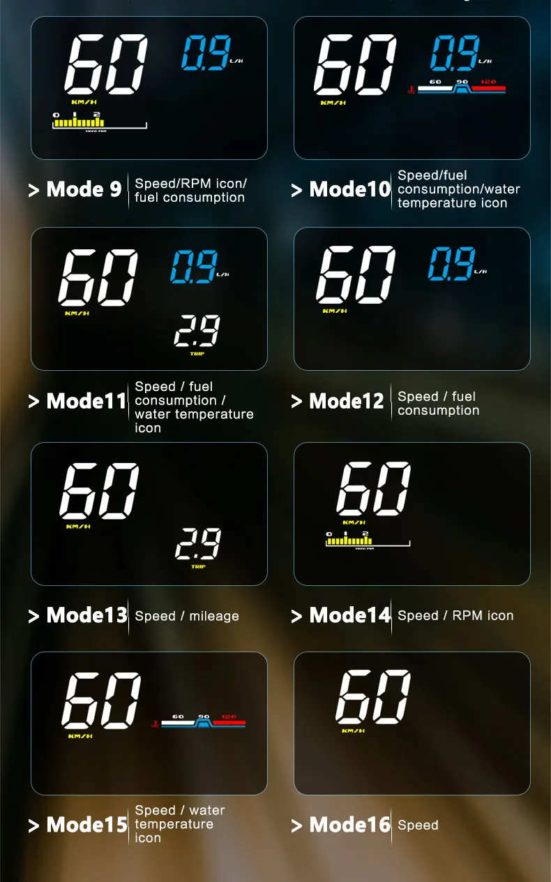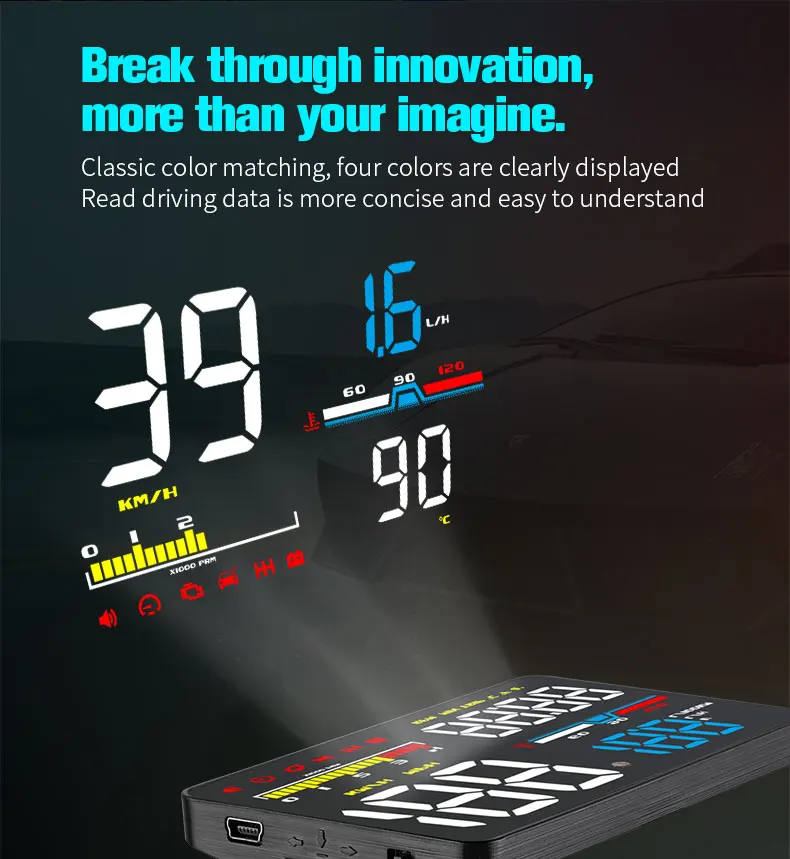 Функция проекционного дисплея HUD: Скорость, скорость, температура воды, напряжение, мгновенное масло/Среднее потребление топлива, пробег и т. Д. Высокопроизводительный чип обработки, высокая производительность и совместимость, двойная память и двухъядерный процессор для обеспечения бесперебойной работы высокой скорости. Светодиодный дисплей высокой четкости может четко отображаться в течение дня. Металлическая нанотехнология используется спереди, чтобы очистить избыточное отражение и сделать изображение более четким. Высокотемпературный абс + Поликарбонат материал перед наукой и техникой: HUD на жарком солнце, в сочетании с теплом, генерируемым работой, температура будет достигать 50 - 60 градусов. Мы используем термостойкий материал, поэтому наши клиенты могут безопасно использовать его.