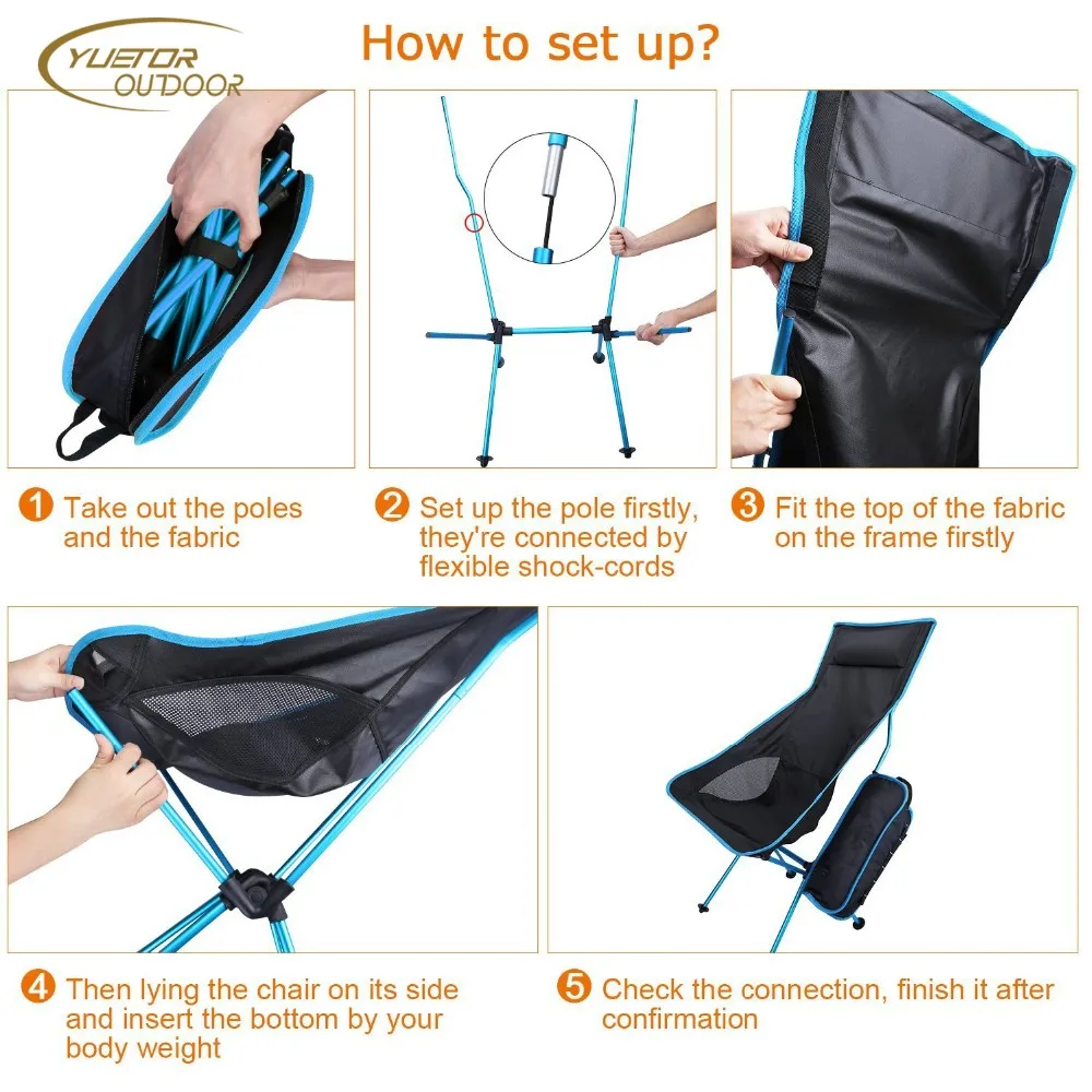 Портативный дизайн: сетка и каркас можно сложить на мелкие части. Это портативное кресло достаточно компактно, чтобы положить его в рюкзак или багаж.