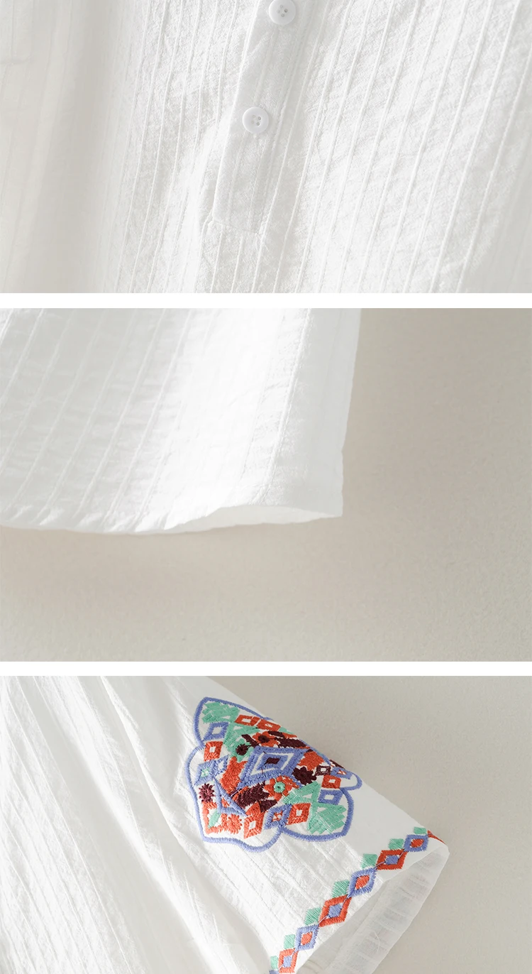 Элегантная женская футболка с коротким рукавом, тонкая белая футболка из хлопка и льна с вышивкой на пуговицах для отдыха, топы для девочек Mori, 2019