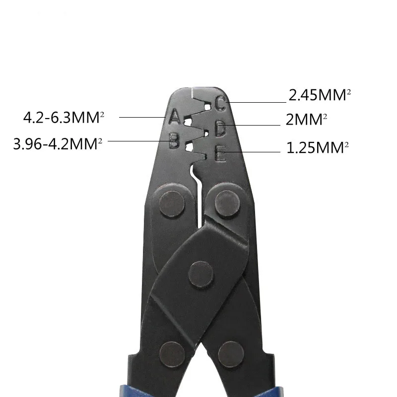 Диапазон обжима: A: 0,8-2 мм2 B: 0,2-0, 5 мм2 C: 1,3-2 мм2 D: 0,5-0, 8 мм2 E: 0,2-0, 3 мм2 Длина: 210 мм Вес: 0,4 кг
