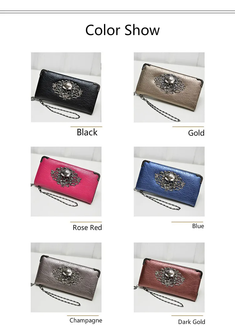 Женский кошелек-клатч из искусственной кожи, на молнии, с цветочным принтом и черепом, для кредитных карт, 2019