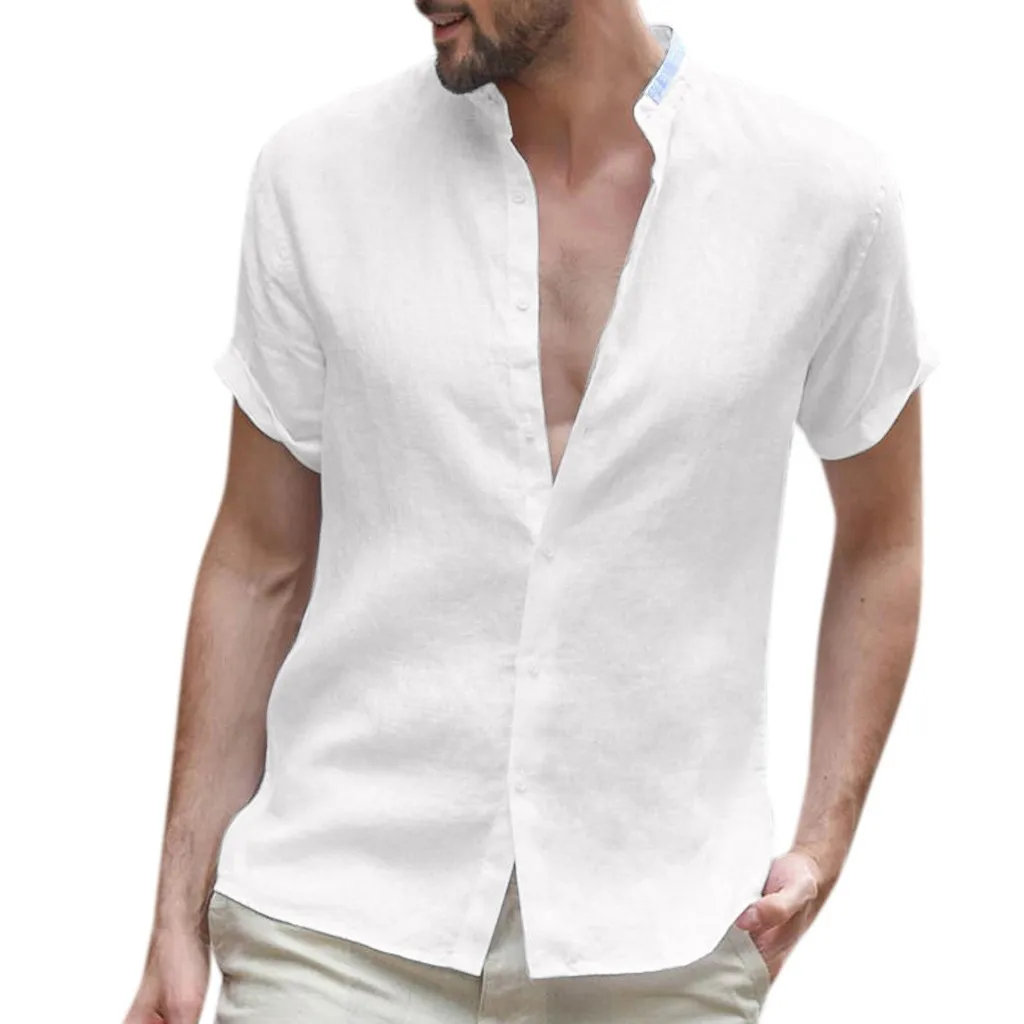 Мужские Мешковатые хлопковые льняные однотонные футболки с коротким рукавом и пуговицами в стиле ретро топы блузки