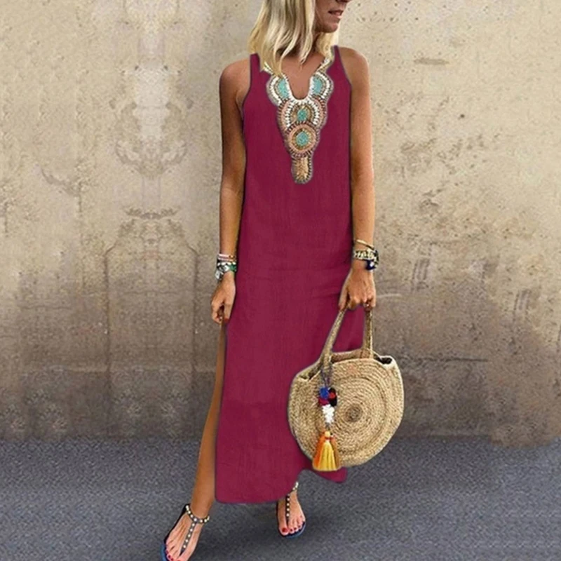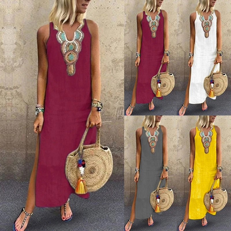 * Описание товара:Без рукавов, v-образный вырез, прямое платье, сплошной цвет, повседневный разрез