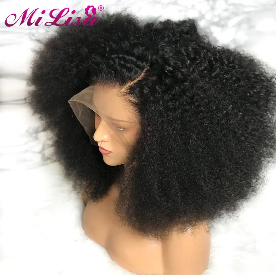 Mi Lisa кудрявый парик Mi Lisa 13x4 кружевной передний парик из человеческих волос для черных женщин бразильские волосы Remy 30 дюймов афро кудрявый парик