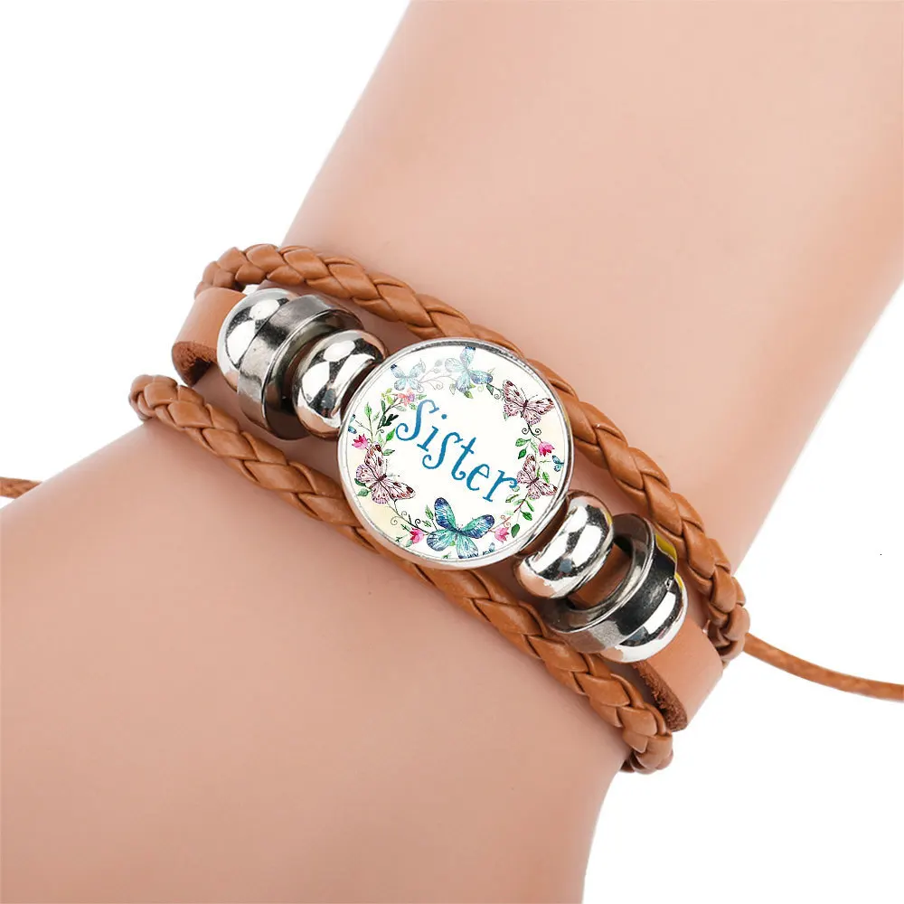 Новые дизайнерские плетеные кожаные браслеты с надписью Sister для женщин и мужчин, Прямая поставка, подарки для сестер, лучший подарок для друзей