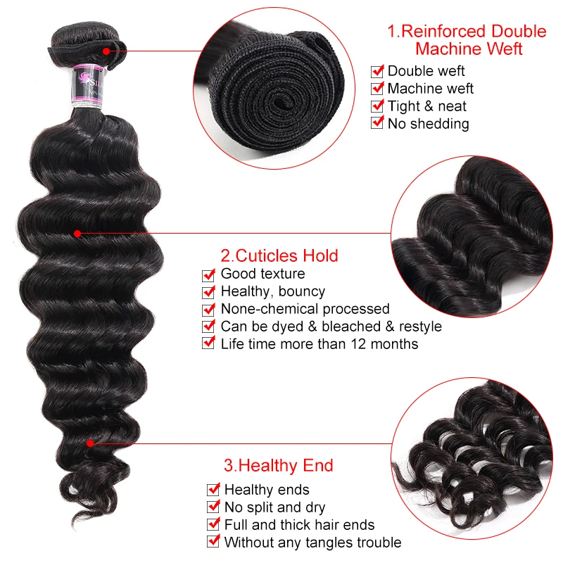 Пупряди с глубокой волной застежкой перуанские человеческие волосы 3/4 пряди Ossilee