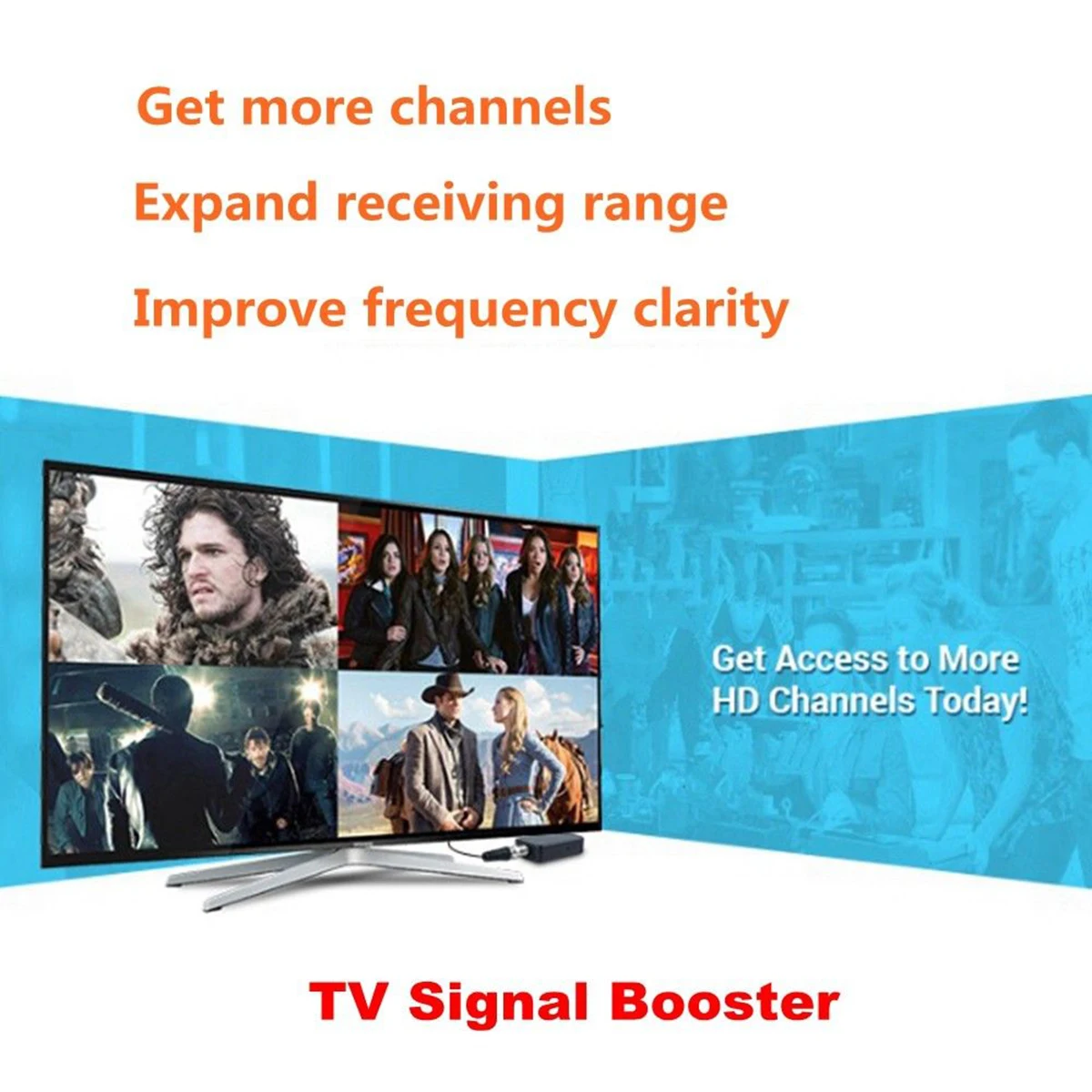 * Если изображение телевизора не является кристально чистым, или вы не можете получить слабые сигналы из дальних башен, используйте этот усилитель для увеличения ослабленных сигналов.