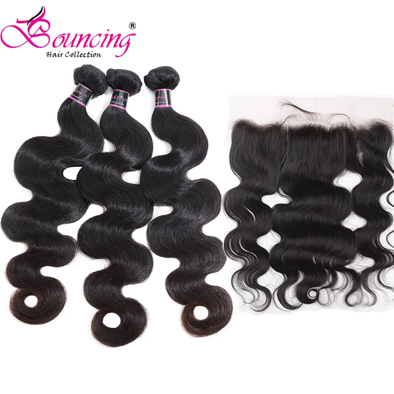 Волнистые волнистые пряди волос с 13*4 кружевными фронтальными бразильскими Человеческие волосы Remy 3 пряди для женщин Бесплатная доставка