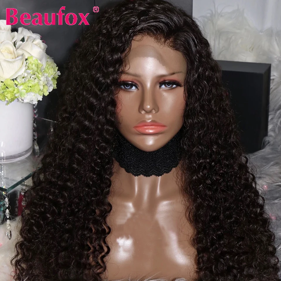 Beaufox Бразильские глубокие волнистые кружевные передние человеческие волосы парики с детскими волосами предварительно выщипанные человеческие волосы кружевные передние парики 180% Remy Парики