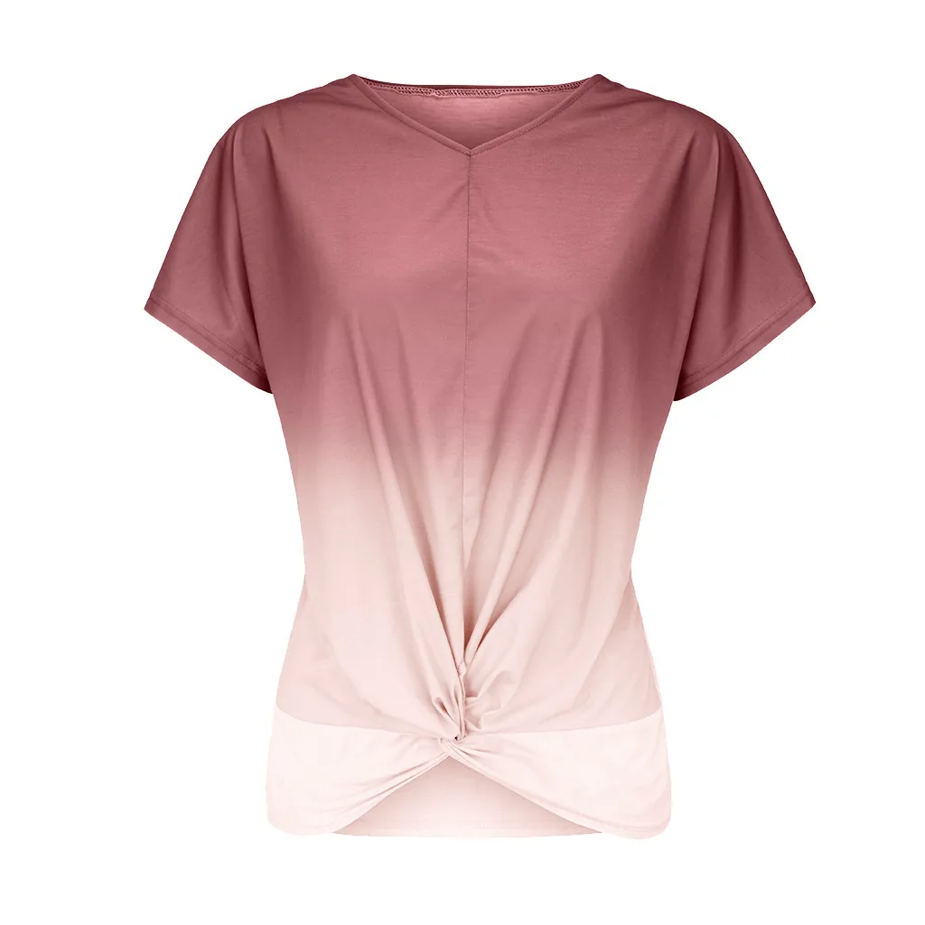 1. Особенности: большие размеры, повседневная одежда, градиентный цвет, v-образный вырез, короткий рукав, футболка, Топы, повседневная одежда, стильный и модный дизайн, Летние повседневные топы