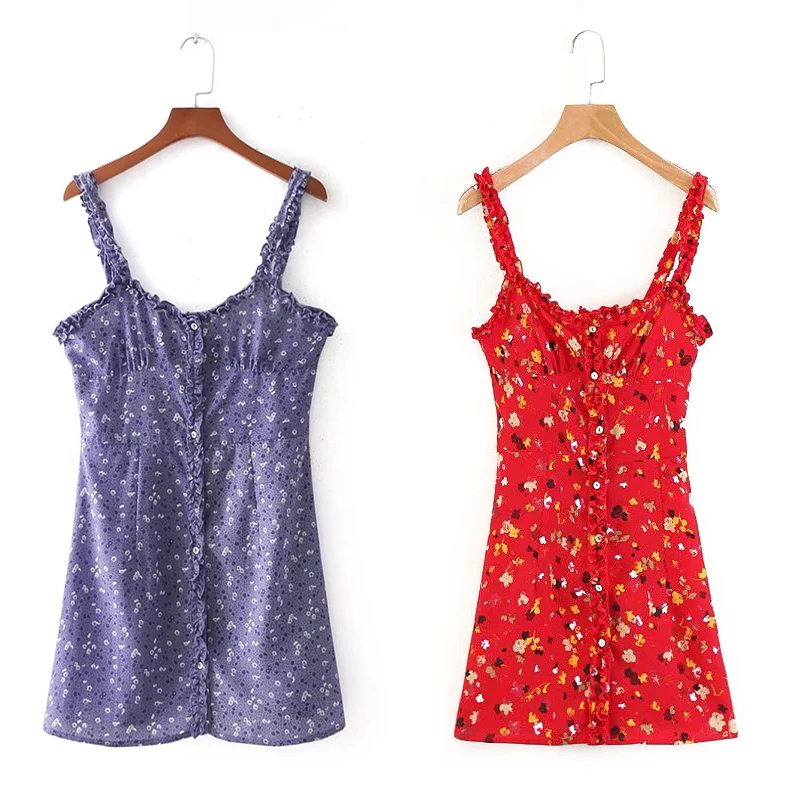* Описание товара: Летнее женское сексуальное платье на бретельках с цветочным принтом, короткое мини-платье с оборками, платье-комбинация