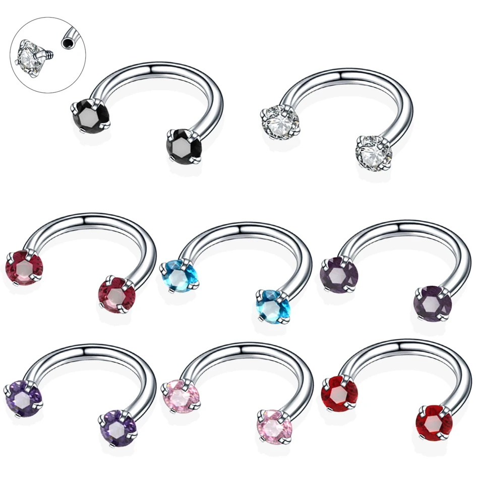 1 шт., хирургический стальной нос, пирсинг, красочный драгоценный камень, доступны, Лабрет, гвоздик, подкова, кольцо, пирсинг спираль, пикантные Украшения для тела