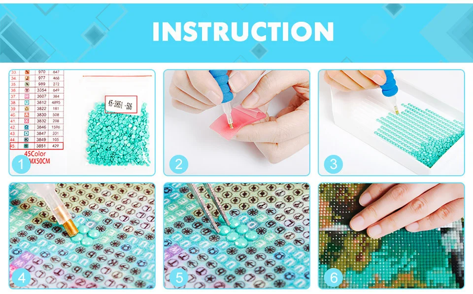 4. Tear apart the partial film and stick the daimond to the canvas accoding to the corresponding number.