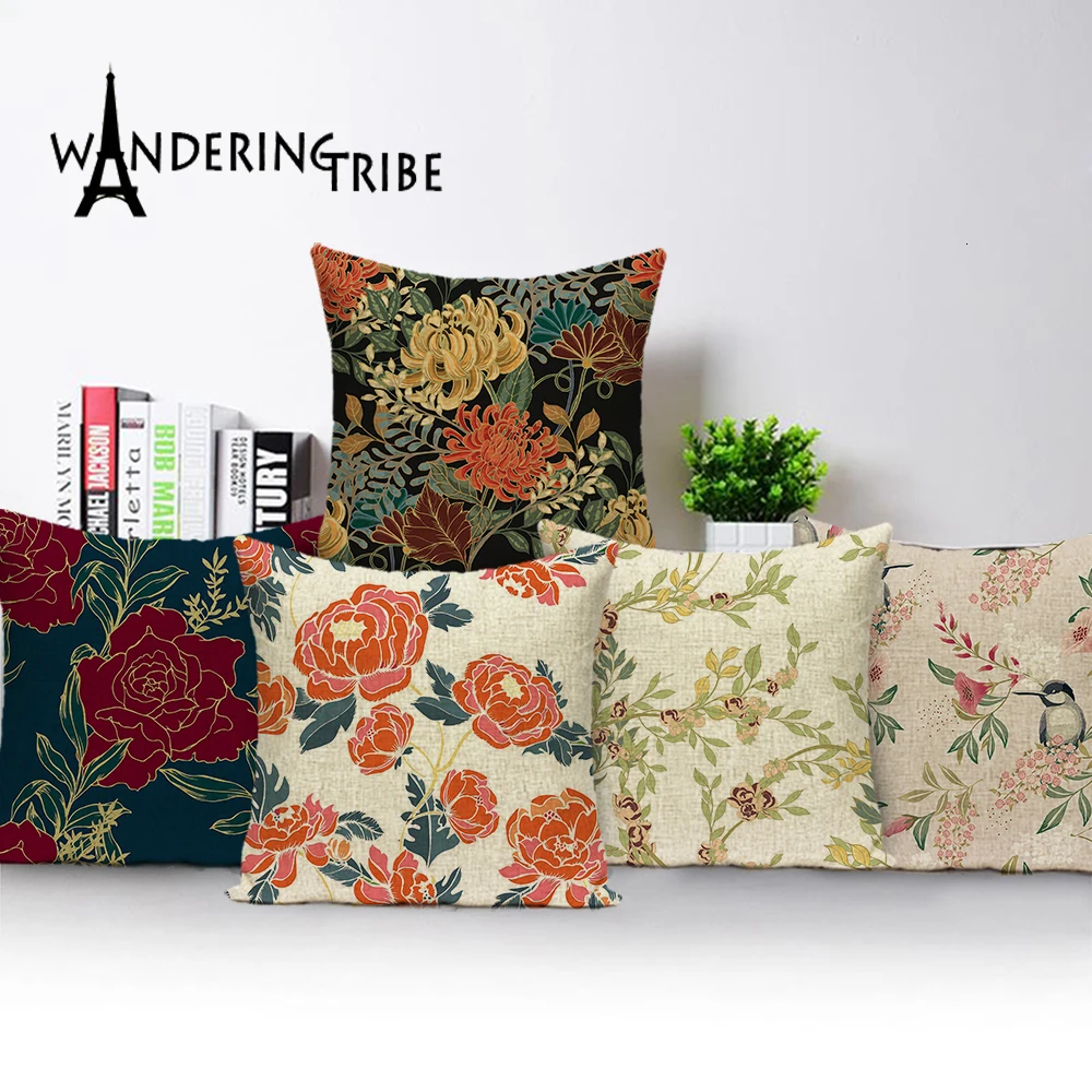 Ретро Чехол для подушки, скандинавские красные цветочные подушки для домашнего декора, льняные Чехлы для подушки с растениями, чехлы для диванов на заказ, чехол s