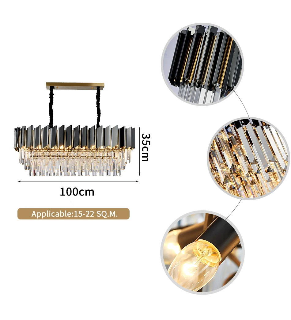 Новая современная люстра для столовой, роскошное прямоугольное освещение для кухни, остров, хрустальные лампы, украшение для дома, светодиодный хрустальный светильник