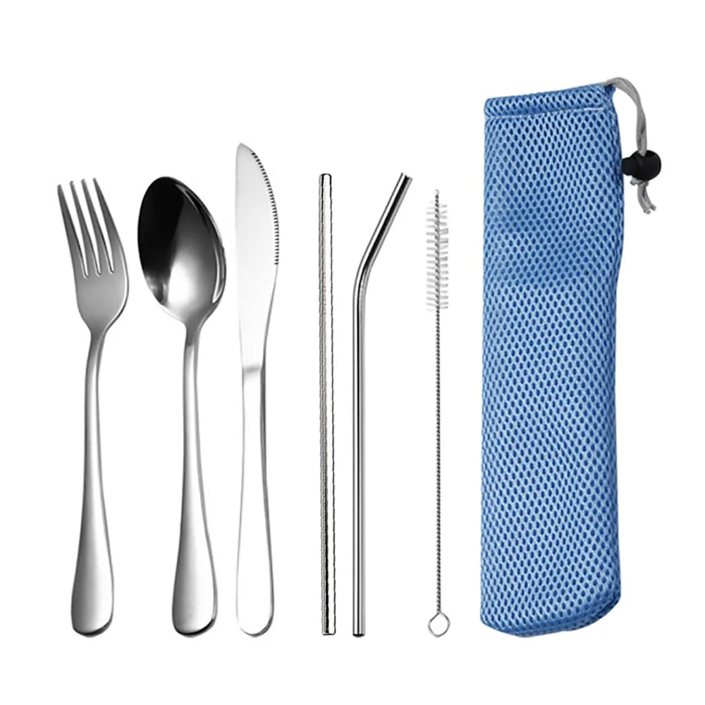 Посылка А: 10 шт./компл. 1x Обеденный нож, 1x обеденная ложка, 1x обеденная вилка, 1x обеденные палочки, 3 разных размера соломинки для питья, 1 Очиститель соломинок, 1 чехол для хранения, 1 сетчатый мешок Посылка B : 7 шт./компл. 1x обеденная ложка, 1x обеденные палочки, 3 разных размера соломинки для питья, 1 соломинка для очистки, 1 сетчатый мешок Хороший материал: нержавеющая сталь 304, набор посуды прочный и долговечный, термостойкий, антикоррозийный. Полировочное зеркало: Роскошное полировочное зеркало разбивает депрессию и сохраняет посуду яркой, модной и элегантной. Можно мыть в посудомоечной машине: легко использовать и чистить, подходит для использования в отелях, домах, барах, вечеринках ..