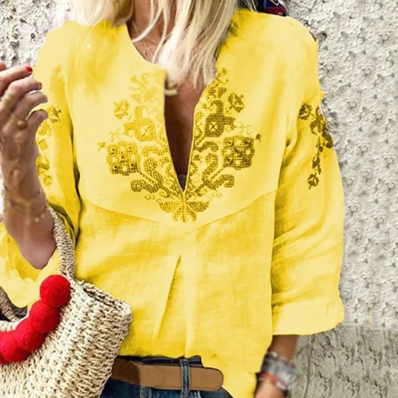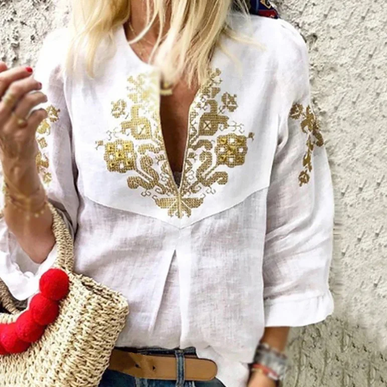 * Описание товара: женские повседневные свободные топы в стиле кэжуал с v-образным вырезом и рукавами 3/4, простая футболка-блузка