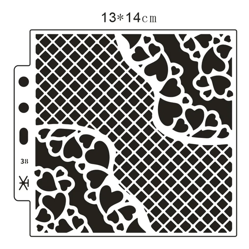 13*14 см Сетка сердца крышка templat трафареты для скрапбукинга спрей Пластиковая форма Щит DIY торт полые украшения Печать Кружева линейкаUS $0,29