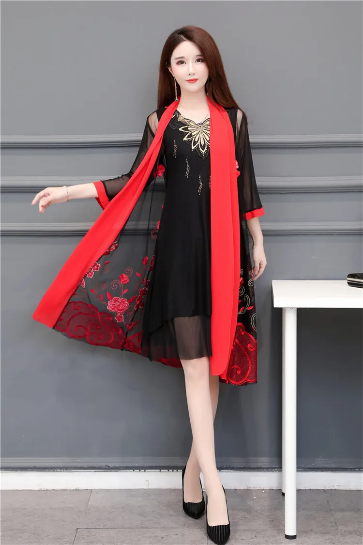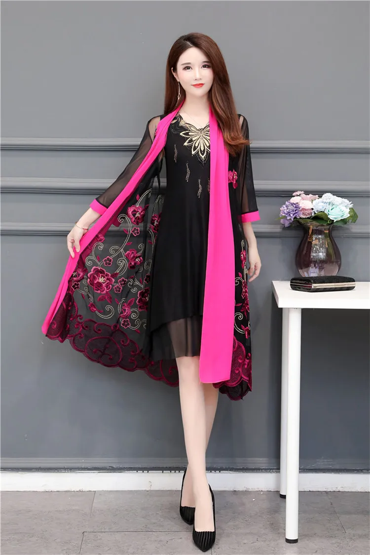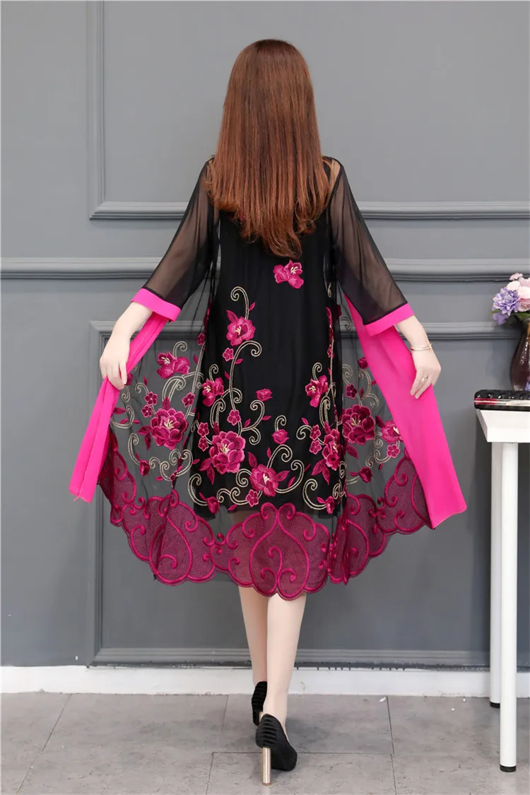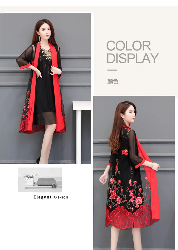 Женский винтажный вечерние рафан с цветочной вышивкой, вечернее платье из двух частей с рукавом до локтя, модель 2019 на лето, размера плюс