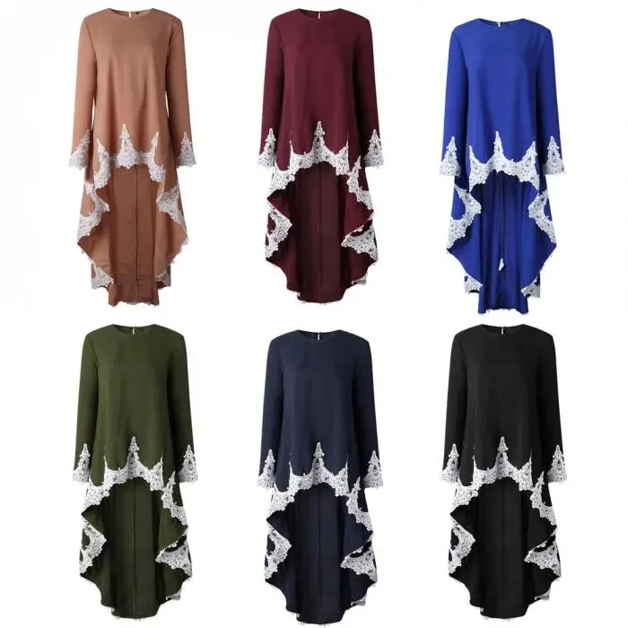Лидер продаж, 1 шт., женское кружевное платье с длинным рукавом необычной длины, круглый воротник, модная одежда CXZ Особенности: