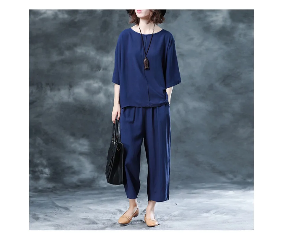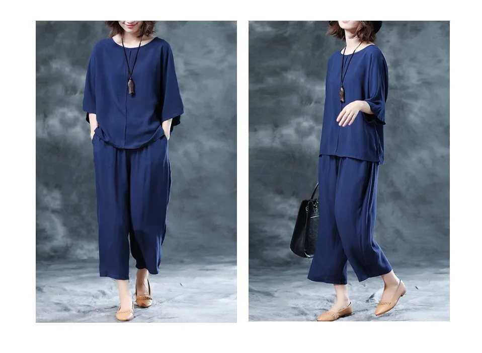 Модный летний комплект из двух предметов, женские свободные брюки с широкими штанинами + Повседневная рубашка размера плюс, костюмы, офисные элегантные женские комплекты