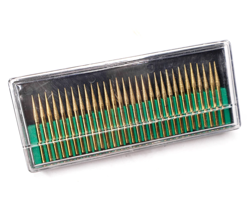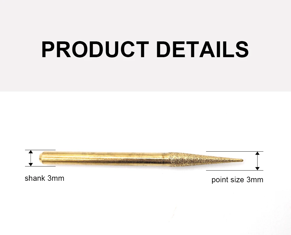 30 шт./компл. абразивная алмазная конусная Шлифовальная головка 120 # Размер 3x3 мм шлифовальная поверхность из необработанного камня