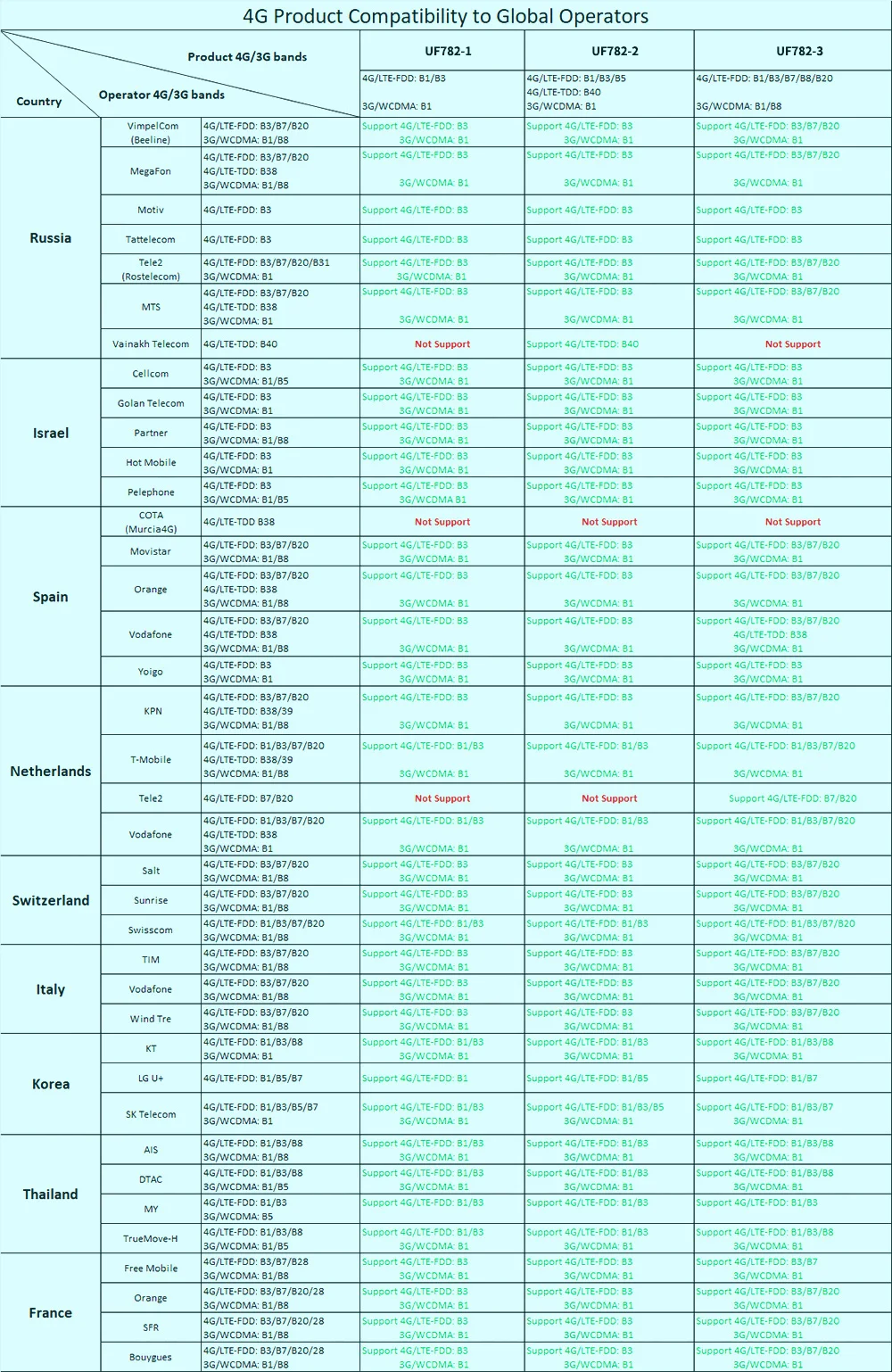 Пожалуйста, проверьте маршрутизатор, работает ли он с вашим оператором или нет, ознакомившись с приведенным ниже чатом. Если вы не в стране,Пожалуйста, позвоните своему оператору, чтобы получить частые полосы, которые он запускает илиПосмотрите на веб-сайт ниже.