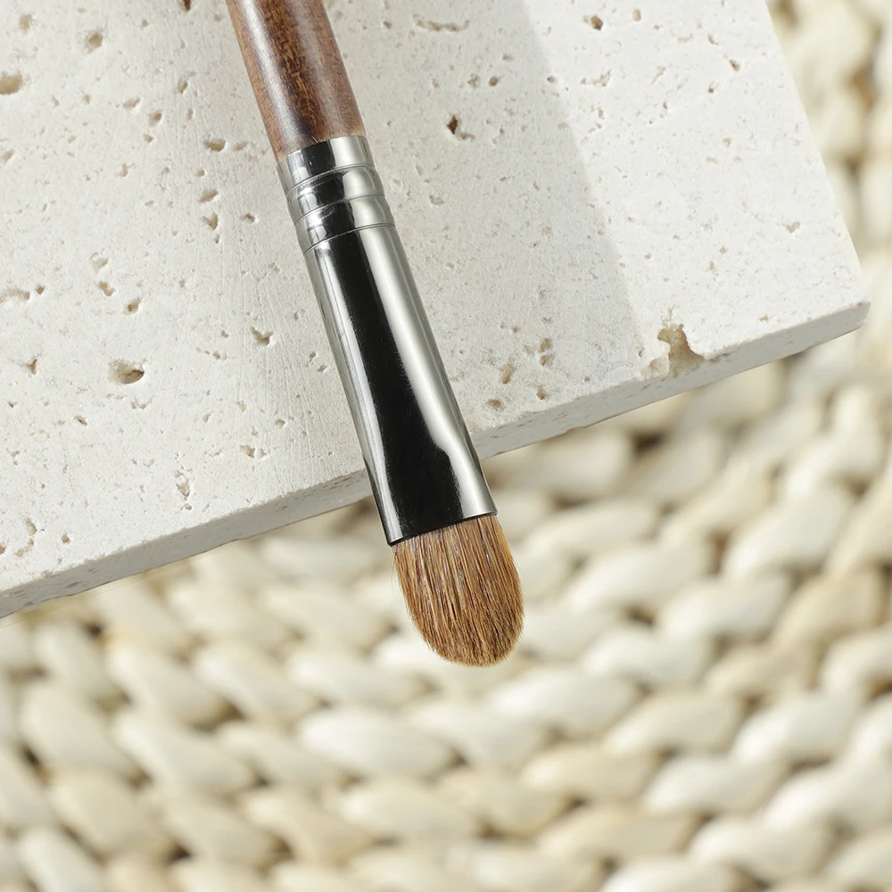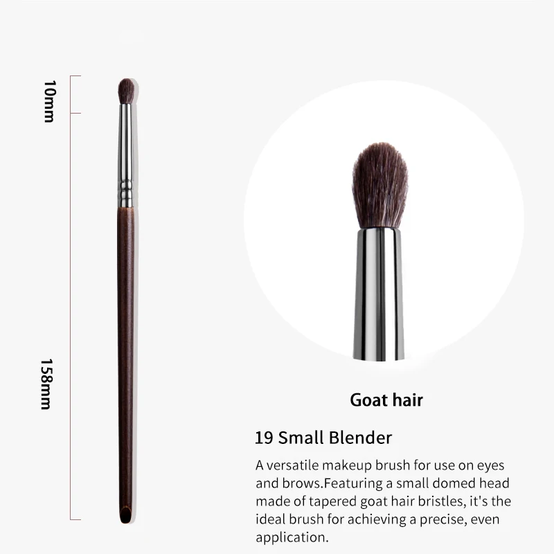 19 маленький блендер Материал: кисть из натурального козьего ворса Длина волос: 10 мм Длина ручки: 158 мм Универсальная Кисть для макияжа для глаз и бровей. С небольшой куполообразной головкой из конической щетины из козьего волоса, это идеальная кисть для достижения точного и равномерного нанесения.