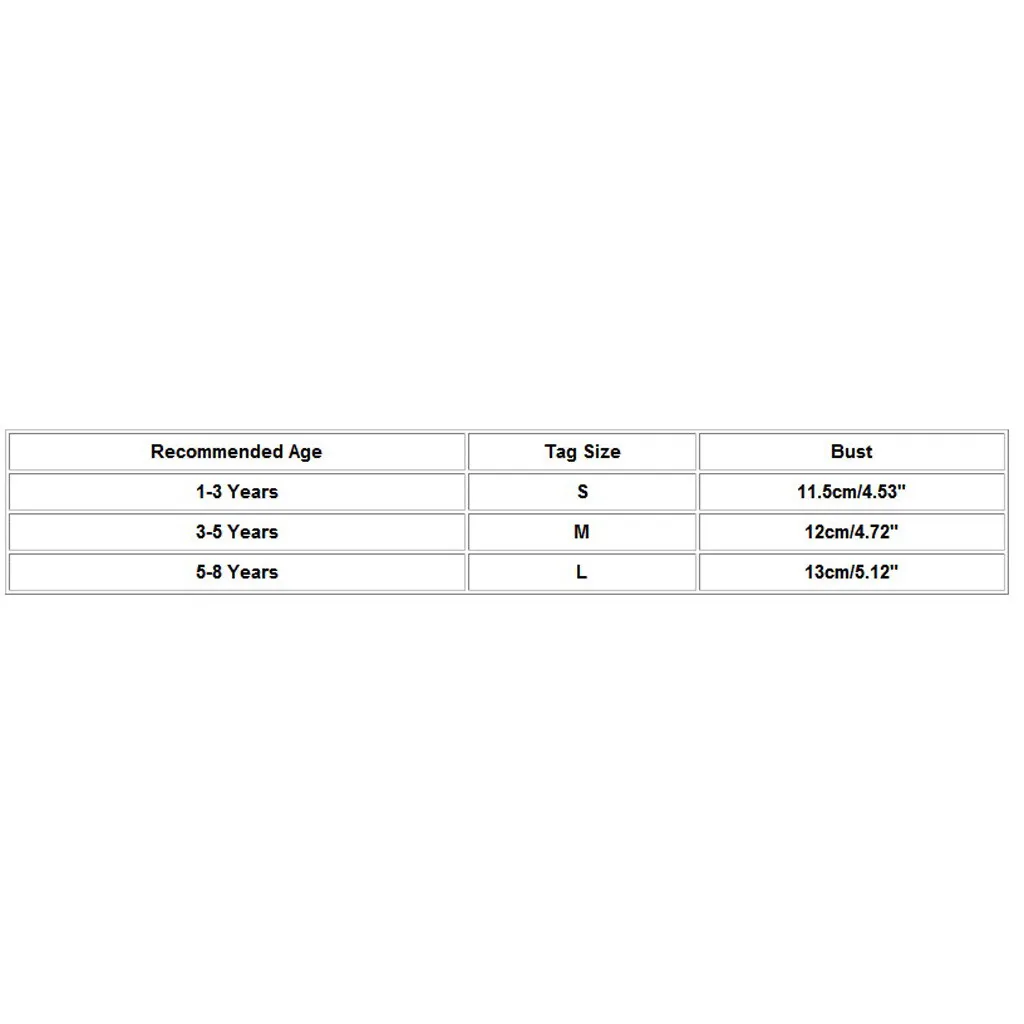 | Рекомендуемый возраст | Тег Размеры | Обхват груди |