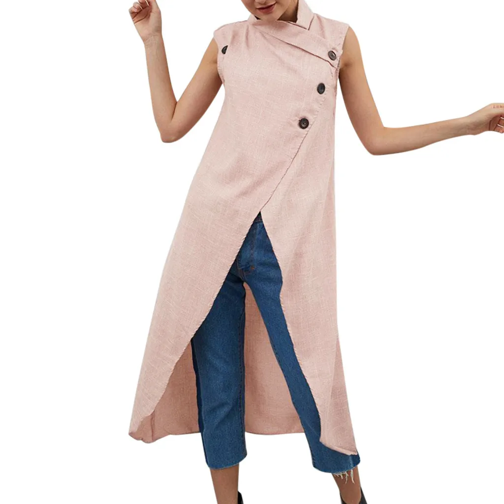 Женское платье из хлопка и льна SAGACE, летнее платье без рукавов с пуговицами, большие размеры