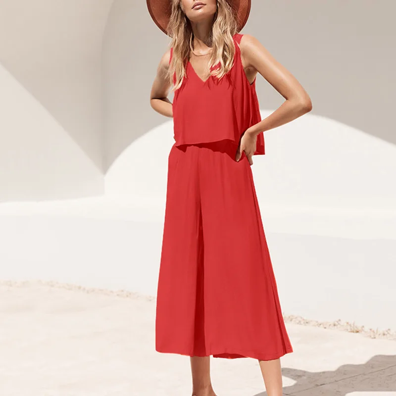 * Описание товара: женский комбинезон без рукавов, широкие брюки, облегающий пляжный комбинезон