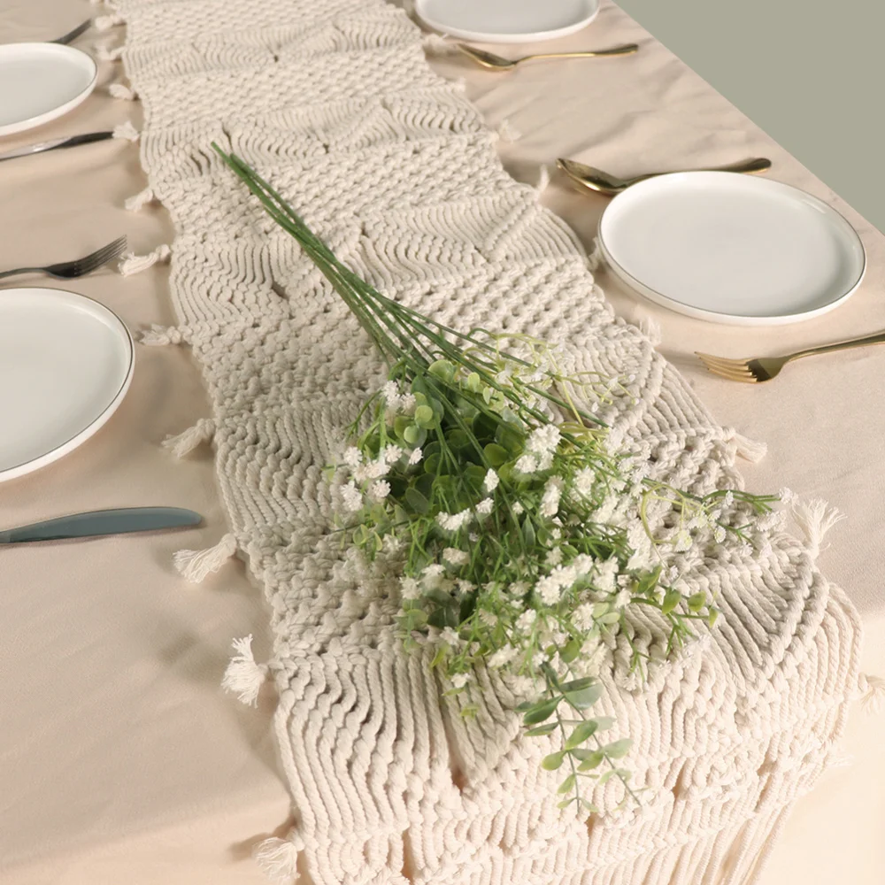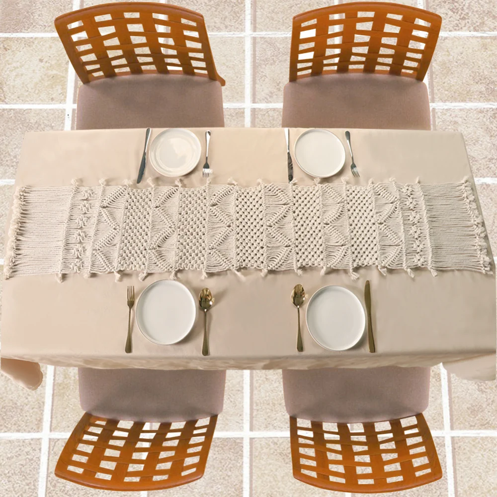 Дизайн-Макраме Настольный бегунок уникальный дизайн, после нескольких часов завязывания, с использованием натуральных материалов, придающих минимализм и расслабленный вид
