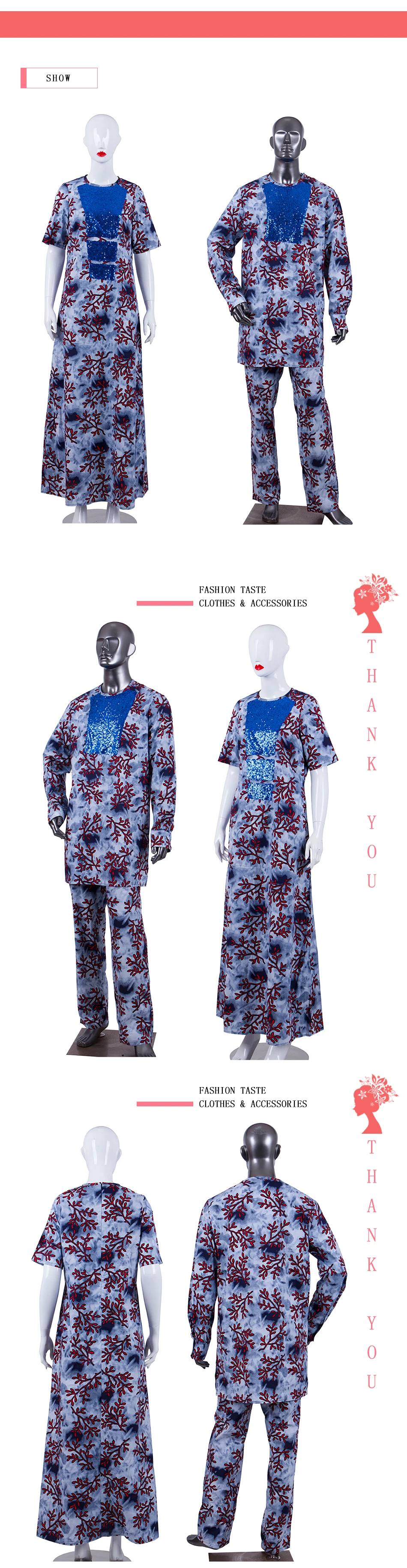 Африканские платья для пар Высокое качество Bazin ткань женское длинное платье с карманами и мужские костюмы с длинными рукавами вечерние комплекты WYQ286