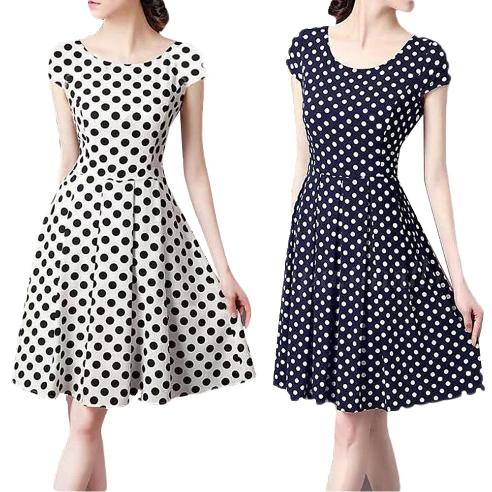 * Описание товара: горошек, круглый вырез, короткий рукав, Повседневный, коммутируемый, а-силуэт