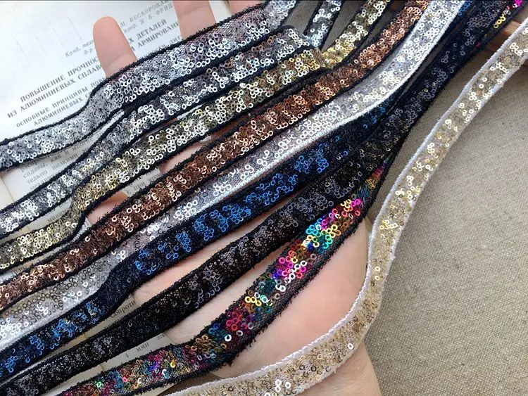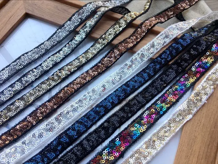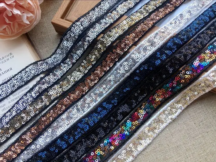 1,2 см Широкий цветной блеск рука шить, пайетками и бисером с лентой и кружевом, Одежда для танцев с аппликацией в виде воротники декольте планки, ширина платья в груди, DIY гипюр расходные материалы