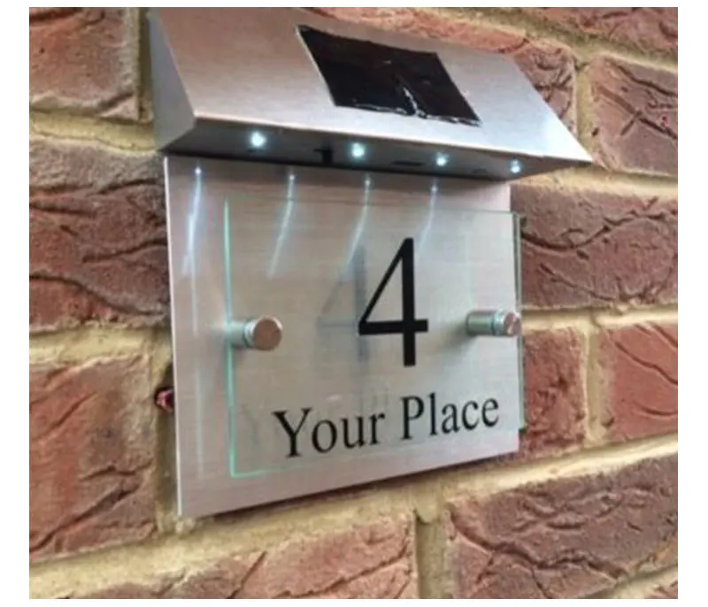 Подгоняемый современный знак на дом, табличка, номер двери, уличное стекло, алюминиевый эффект, светодиодный солнечный номер, наклейки, адресный номер для дома
