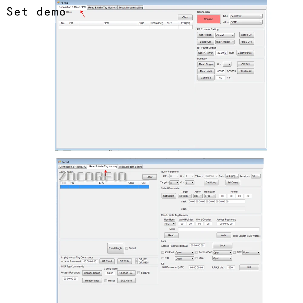 Мощность RF: 0-30 дБм, регулируемый набор по